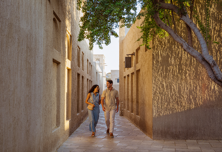 片側からはドバイの近代的な高層ビル群を、反対側からは旧市街の街並みを望むことができます。