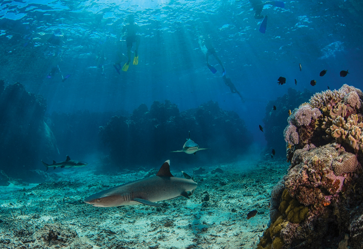 また、シャークシュノーケリングもお楽しみいただけます。カヤックやパドルボート、ビーチでのんびりしたり、ご自由にお過ごしください。