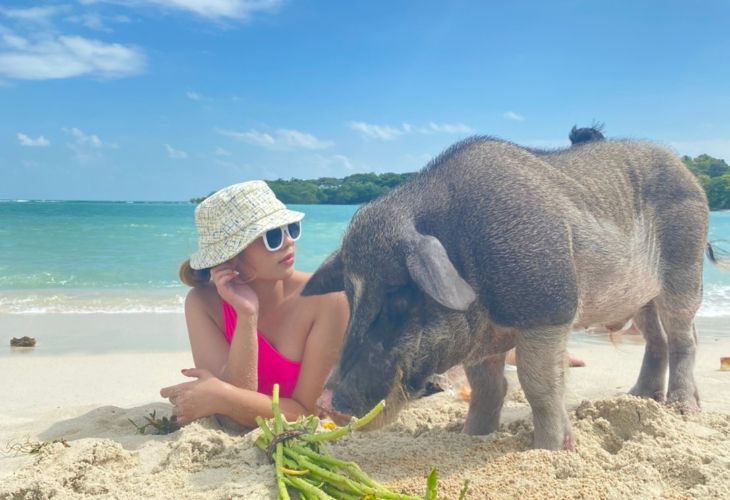 ビーチにはなんとブタさんが!?